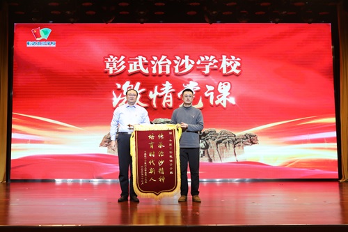 演出结束后,刘继东代表学校向彰武治沙学校赠送锦旗。