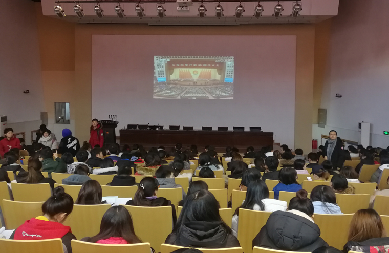12月18日上午10时,庆祝改革开放40周年大会在人民大会堂举行。中共中央总书记、国家主席、中央军委主席习近平出席大会并发表了重要讲话。学校师生以部门或者以支部为单位,分别在20余个会场认真观看了大会直播。