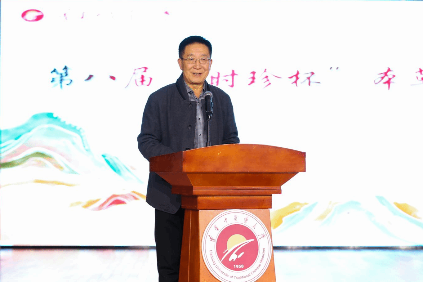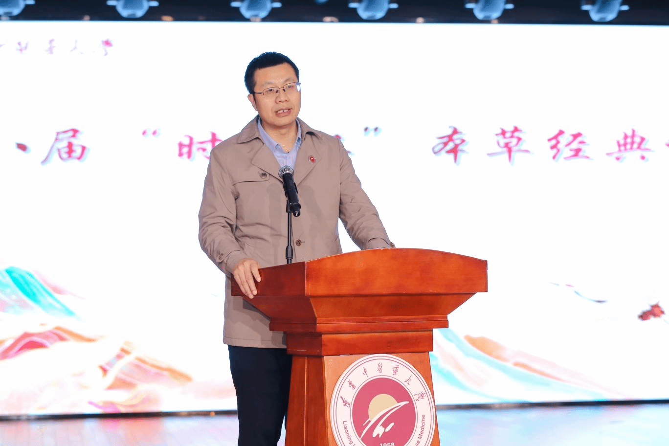 许海玉致辞,他指出,大赛历经多年发展,已成为药学院传承中医药文化的重要载体,赛事是学校落实立德树人根本任务、推动中医药文化传承创新发展的重要实践,展现了学校对弘扬中医药文化、培养高素质人才的高度重视。