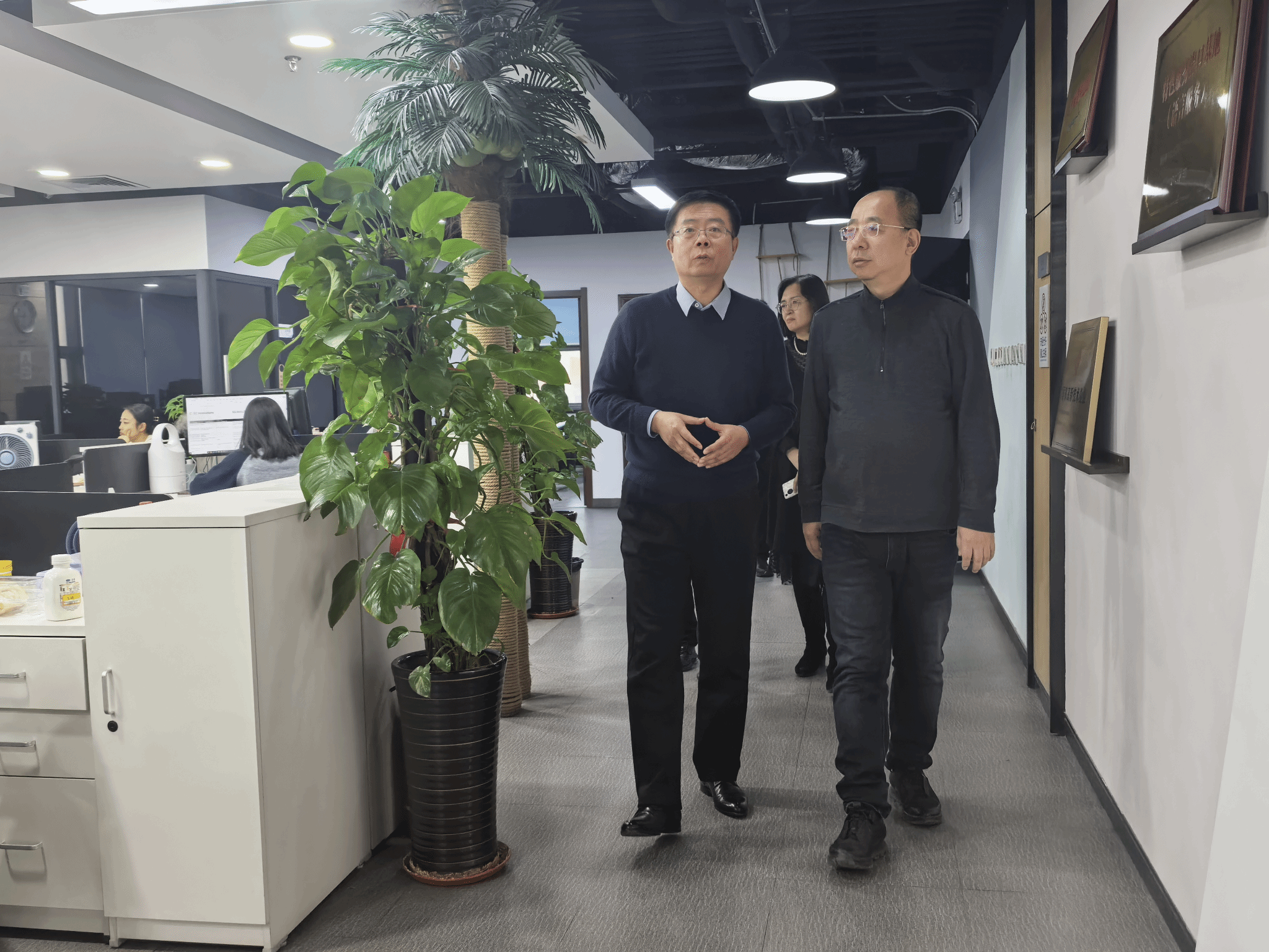 座谈结束后,张锦徽一行在公司负责人的陪同下,参观了创思佳业公司的办公区域与项目运营现场,近距离了解企业的工作环境、业务流程与文化氛围。