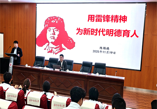 陈锡德作了题为《用雷锋精神为新时代明德育人》辅导报告。他围绕“学雷锋现象”的厚度与广度,深刻阐释了雷锋精神的时代价值,结合生动事例,阐述了雷锋精神作为社会主义核心价值观的生动体现如何超越时代、滋养人心。他鼓励中医药学子在精研医术的同时,更要将服务人民、乐于奉献的精神融入实践,担当时代使命。