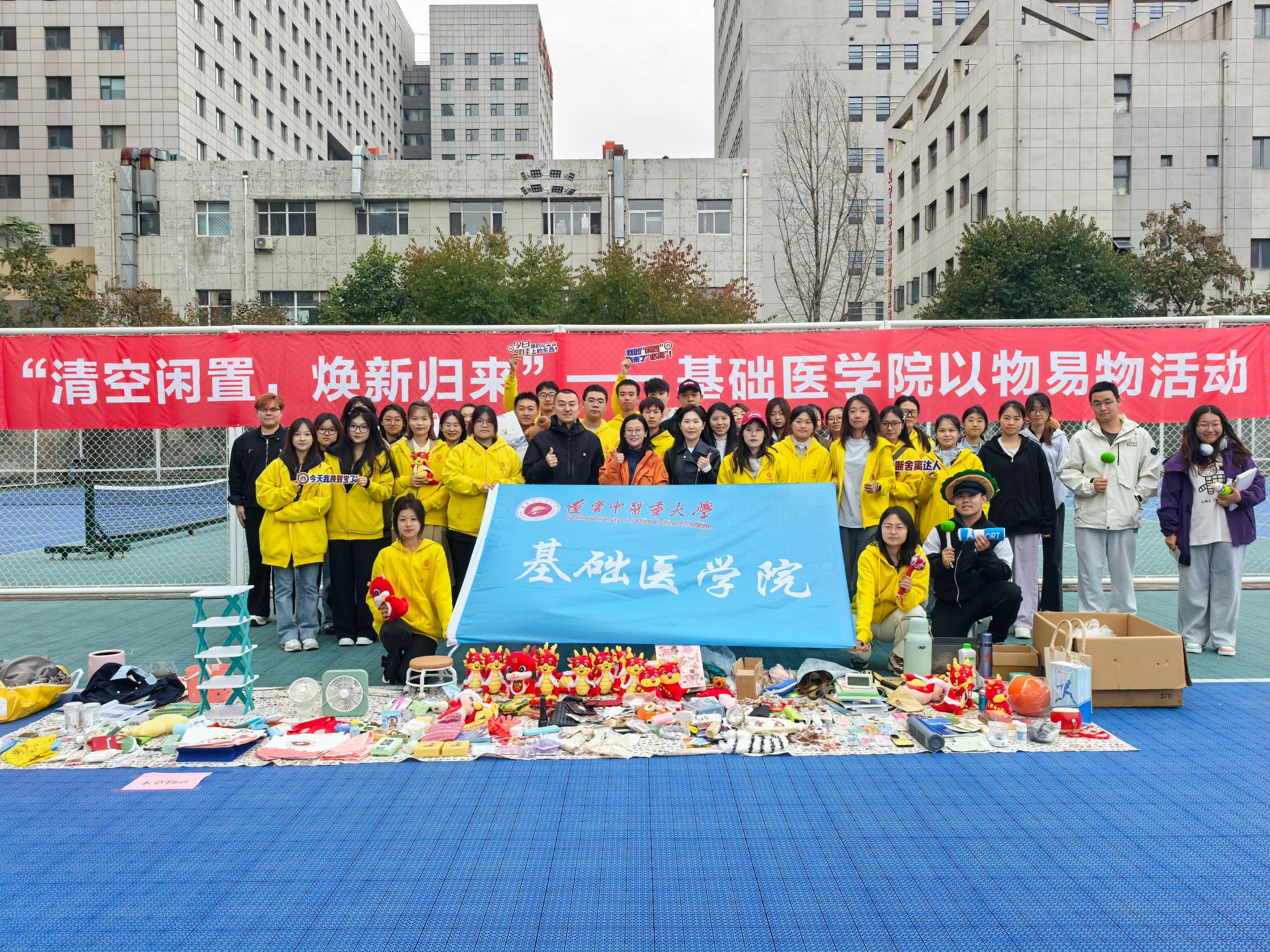 为帮助同学们解决寝室闲置物品堆积问题,提升寝室卫生、打造舒适居住环境,同时搭建同学间交流互动的平台,10月12日,基础医学院在西院网球场举办“清空闲置 焕新归来”以物易物活动,全院同学积极响应、热情参与。