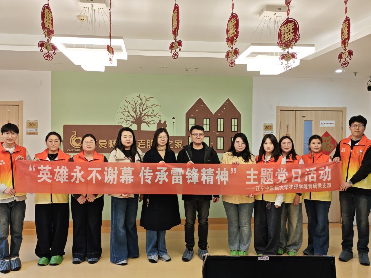 3月22日,护理学院青研党支部走进大东区仁爱畅晚养老照护之家,开展以“英雄永不谢幕,传承雷锋精神”为主题的党日活动,学院院长刘蕾、党总支副书记田国伟参加活动。