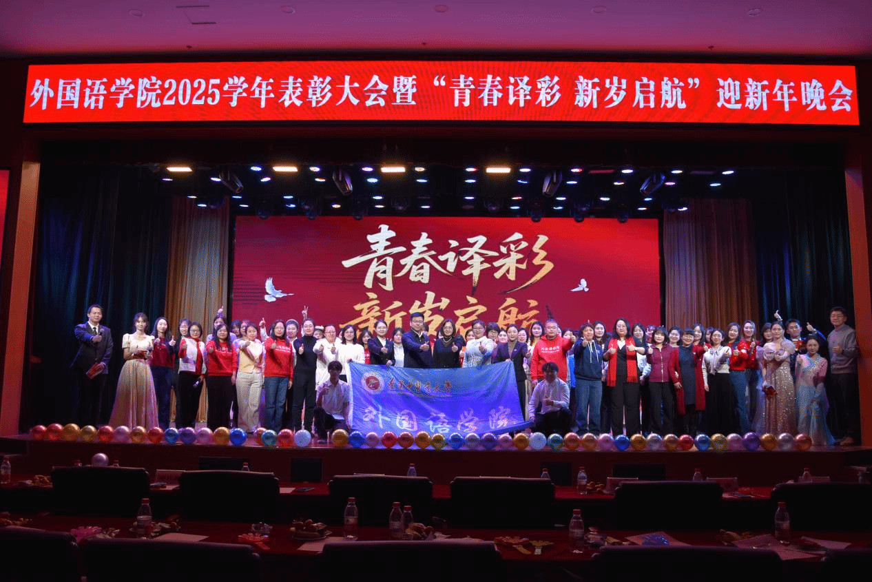 12月10日,外国语学院2025学年表彰大会暨“青春译彩 新岁启航”迎新年晚会在学校大学生活动中心举行。全院师生欢聚一堂,见证青春风采,凝聚奋进力量。
