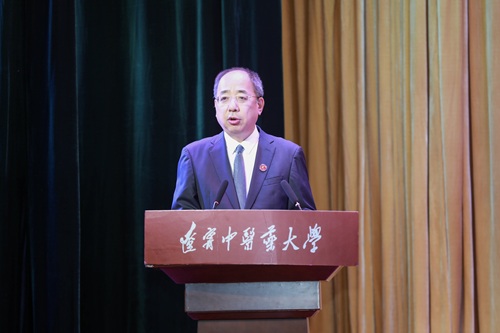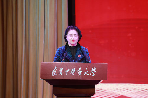 杨鸫祥从党建引领焕发新活力、内涵建设跃升新水平、文化建设展现新成就三方面对学校过去一年取得的突出成果和工作情况进行了全面总结。他指出,2025年,学校党委团结带领全校干部、师生,认真贯彻党的教育方针,落实立德树人根本任务,万众一心、踔厉奋发、勇毅前行,克服困难与挑战,高质量圆满完成了2025年部署的14个方面、80项重点任务,在争创“高水平、有特色的一流中医药大学”的新征程上迈出稳健步伐,取得了新成绩、跃上了新台阶、开创了新局面。杨鸫祥表示,新的一年全校师生员工要在学校党委领导下,锚定一流目标任务,在“十四五”成就基础上,扎实推进高质量发展,在奋力谱写中国式现代化辽宁篇章中,彰显辽宁中医人的担当,贡献辽宁中医的力量。