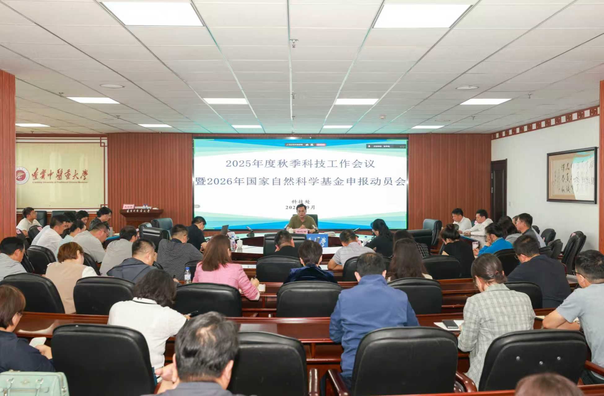 9月24日,学校召开2025年度秋季科技工作会议暨2026年度国家自然科学基金申报动员大会。此次会议旨在总结上半年科技工作,部署下一阶段科技工作任务,并全面动员2026年度国家自然科学基金的申报工作。学校党委副书记、校长杨鸫祥出席会议并讲话,副校长戴旭、任路出席会议。各相关单位负责人、各直属附属医院领导、学科带头人、多学科交叉团队负责人及科研骨干通过线上线下相结合的方式参会。会议由戴旭主持。
