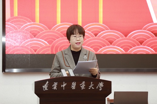 孙彬代表沈阳市妇联向校妇联成立大会表示热烈祝贺,同时充分肯定学校妇女工作成绩。她指出,辽宁中医药大学党委高度重视妇女工作,培养了一大批优秀的女性中医药人才,为学校和沈阳乃至辽宁的中医药事业、医疗卫生事业发展作出了重要贡献。沈阳市妇联将加大对学校妇女工作的支持力度,希望新成立的学校妇联,要坚持党的领导,把准政治方向,在引领妇女思想上展现新担当;要围绕中心服务大局,在推动学校事业和沈阳振兴中彰显新作为;要强化服务意识,维护妇女权益,在联系服务妇女群众工作上实现新突破;要加强自身建设,夯实组织基础,在提升履职能力上展现新形象。
