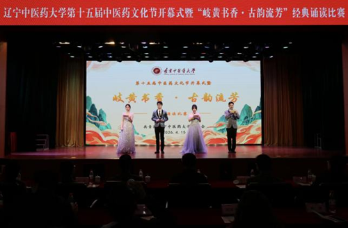 为赓续中医药千年文脉,厚植校园中医药文化底蕴,4月15日,辽宁中医药大学第十五届中医药文化节开幕式暨“岐黄书香·古韵流芳”经典诵读比赛在沈阳校区大学生活动中心圆满举行。学校党委副书记刘继东,评委专家,各学院党总支书记、副书记、团委书记,校团委全体教师及全校师生代表齐聚一堂,共赴一场浸润岐黄智慧、传承经典医籍的文化盛宴。